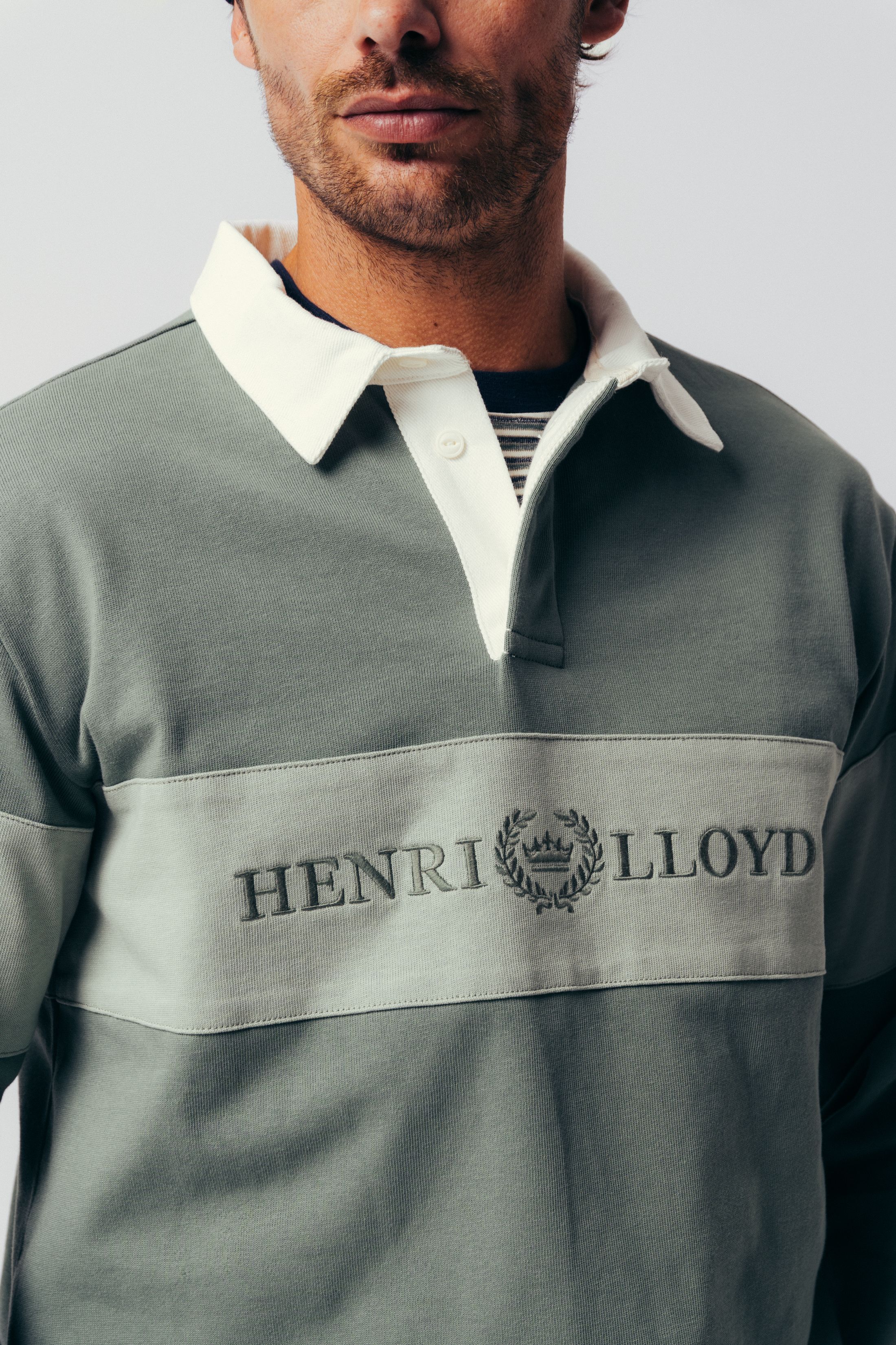 Available in Pale Jade, Fog Blue and Sand, the soft colour contrast banding across the chest and arms creates a distinctive style, enhanced by the classic Henri-Lloyd logo embroidered onto the fabric panel.